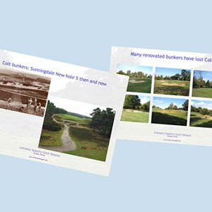 Our restoration work follows an integral and respectful approach. We start by undertaking detailed research. This is essential in order to ensure that we gain comprehensive knowledge of the site's history, the original architect's design philosophy and the issues that are confronting the club's key decision makers at present. Only then do we move to the next step of delivering a detailed course plan, which is then presented to the relevant committees and their members. Finally, and only when all due diligence and dialogue has been completed, we execute remedial works in partnership with the green staff, specialist shapers and contractors. We are very frequently onsite throughout the duration of such works in order to be certain that the end results are consistent with the plan's original vision.